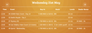 Ayer martes fue el inicio oficial de los torneos contemplados en el programa, se jugaron 4 torneos paralelos y un satélite para el Main Event. Entre todas las competiciones se registraron un total de 1.456 jugadores repartidos de la siguiente manera: